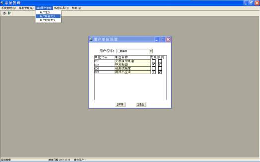 選中用戶后,點中想設定權限的賬套,最右側會出來所有菜單,打上勾的菜單是此用戶有的權限,沒打勾的菜單此用戶不可見。