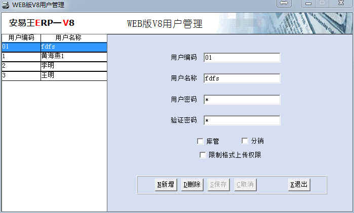 2、點擊菜單WEB用戶管理->用戶定義,增加WEB版V8系統用戶
